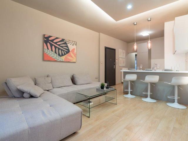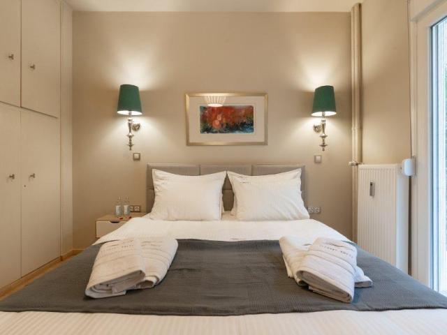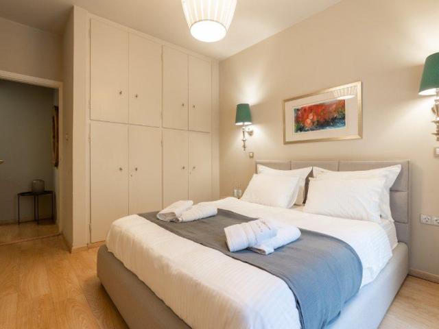 Το διαμέρισμα διαθέτει δύο προσεγμένα υπνοδωμάτια, σχεδιασμένα για ηρεμία και άνεση, το καθένα εξοπλισμένο με άνετο διπλό κρεβάτι (queen size). Τα σύγχρονα αυτόνομα καλοριφέρ εξασφαλίζουν ιδανική θέρμανση τον χειμώνα, ενώ ο κλιματισμός προσφέρει δροσιά κατά τους θερινούς μήνες. Το κομψό μπάνιο συνδυάζει μοντέρνο σχεδιασμό με λειτουργικότητα και το ακίνητο περιλαμβάνει πρακτικές παροχές όπως πλυντήριο, στεγνωτήριο, σίδερο, πιστολάκι μαλλιών και τηλεόραση.