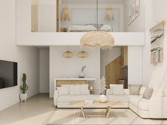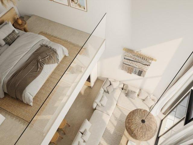 Στο πρώτο επίπεδο είναι 1 σαλόνι , κουζίνα , τραπεζαρία , 1 wc , μπαλκόνι και μια εσωτερική σκάλα , όπου οδηγεί στο δεύτερο επίπεδο τύπου loft με 1 (master) υπνοδωμάτιο με ενσωματωμένο μπάνιο.