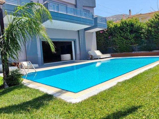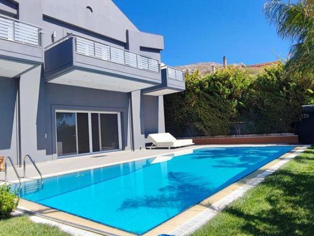 Πολυτελής Βίλα 290 τ.μ κατ/υης 2010 σε οικόπεδο 428 τ.μ, 2,5 χλμ από τη θάλασσα. Μία μοναδική κατοικία άριστης κατασκευής με θερμαινόμενη πισίνα υπερχείλισης 52 τ.μ, χωρίς χημικά με σύστημα ηλεκτρόλυσης άλατος, δίκτυο υπολογιστών, Φωτοβολταικά ενεργειακά αυτόνομο χωρίς ΔΕΗ, έξυπνο σύστημα συναγερμού, κάμερες ασφαλείας, τζάκι, 2 θέσεις πάρκινγκ με εγκατάσταση για ηλεκτρικά αυτοκίνητα, βοηθητικοί χώροι ( αποθήκη, λεβητοστάσιο, μηχανοστάσιο για τη πισίνα, ηλιακός θερμοσίφωνας τριπλής ενέργειας, κουφώματα αλουμινίου, διπλά τζάμια, ξύλινα δάπεδα, λέβητας πετρελαίου, κλιματιστικά παντού) . Στο ισόγειο 115 τ.μ βρίσκεται το σαλόνι – καθιστικό, τραπεζαρία, πλήρως εξοπλισμένη κουζίνα και τζάκι, 1 wc , μεγάλη μπαλκονόπορτα 5 μέτρων με θέα τη μοναδική πισίνα. 1ος όροφος,115 τ.μ, με 3 υδ το 1 master, 2 μπάνια, δωμάτιο γκαρνταρόμπα και ξεχωριστό δωμάτιο laundry. Playroom 60 τ.μ στο υπόγειο. Ο κήπος υδροδοτείται από γεώτρηση. Το ακίνητο βρίσκεται στο Ολυμπιακό Χωριό, μία από τις ωραιότερες περιοχές στο Λαγονήσι με ρυμοτομία και πολύ όμορφες νεόδμητες μονοκατοικίες, 3 λεπτά με αμάξι από τη θάλασσα. Τιμή 1.050,000 €